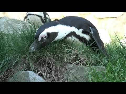 Este pingüino está trabajando duro para proporcionar material de anidación muy necesario para su compañero. Primero trata de romper unos palos de un arbusto. No se da por vencido y lo intenta una y otra vez. Él tira vigorosamente, pero no parece tener mucho éxito. ¡Desearías poder arrancarle algunos palos! Él es más exitoso cuando está tirando de la hierba. Todo por su amado compañero.